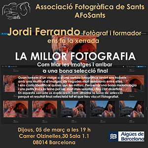 Ahir vam tenir el privilegi de comptar amb el fotògraf de viatges Jordi Ferrando, que ens va explicar com seleccionar les fotografies després d’un viatge: revisar, triar sense por i quedar-nos només amb les millors